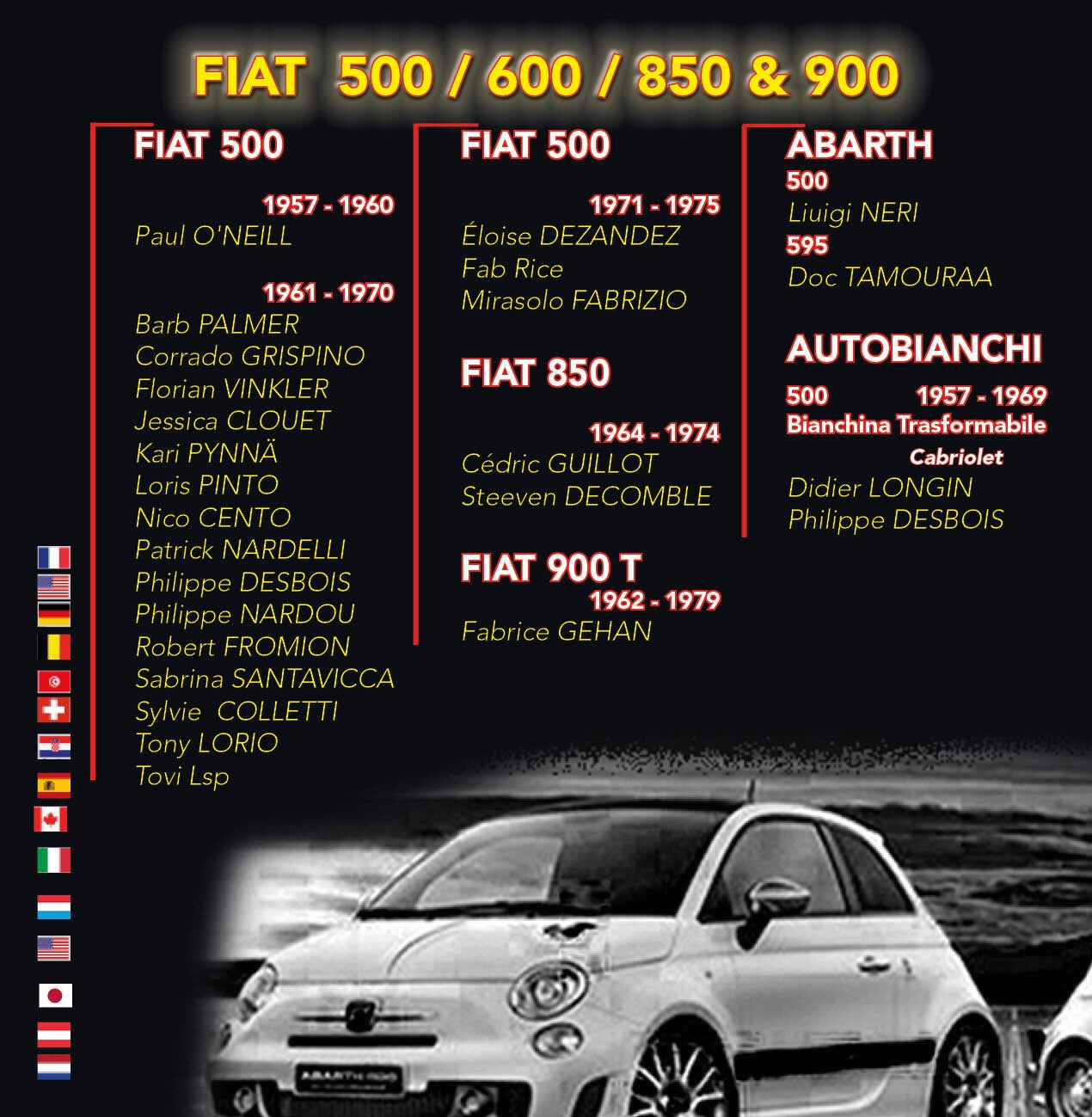 La présentation des véhicules dans cet ouvrage est exclusivement réservée aux membres du groupe Facebook «LE LIVRE FIAT 500 - 600».